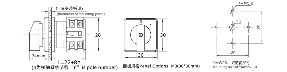 As a professional manufacturer in the field of electrical switches for more than 30 years, Zhejiang Yaming Electric Co., Ltd. has launched LW26 10A Three Positions Cam Switch (internal model YMW26-10) with exquisite craftsmanship and excellent technology, providing efficient and reliable solutions for electrical circuit control.