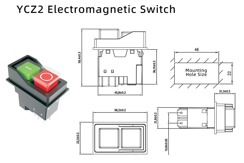 Our 16A Medium Push Button Electromagnetic Switch, internal model YCZ2, is manufactured with advanced craftsmanship and strict fullprocess quality testing. It delivers a longer service life, high rated current capacity and superior sealing performance. Designed with reserved external plug terminals, it can be perfectly matched with auxiliary safety components such as overload switches, limit switches, thermostats and sensors to construct a complete protective circuit. In case of mechanical malfunction, the unit instantly cuts off the main power supply, efficiently preventing potential safety hazards.
