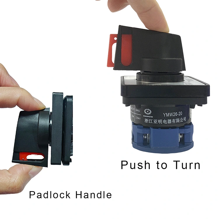 As a professional electrical switch manufacturer with over 30 years of experience, YAMING launches the 20A Padlock Push Control Rotary Cam Switch (internal model: YMW26-20NS), a masterpiece integrating decades of manufacturing experience and technological innovation. This product is designed to enhance safety control and prevent misoperation, suitable for AC 50Hz, max 690V and DC 240V circuits, supporting rated current up to 20A.