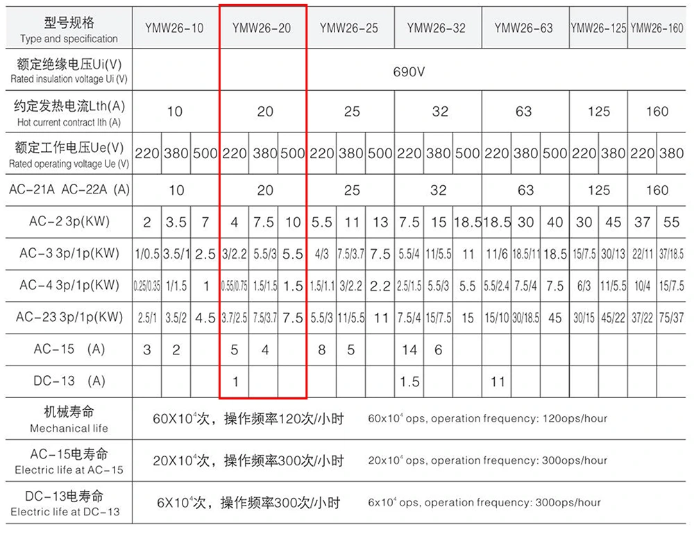 The YAMING 20A Padlock Push Control Rotary Cam Switch is engineered to adapt to diverse electrical working environments, with the following key technical parameters: It is applicable to AC 50Hz circuits with a maximum operating voltage of 690V and DC 240V circuits, supporting a rated current of up to 20A.