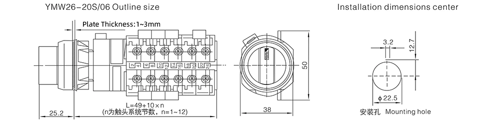 The 20A Single Hole Center Mounting Cam Switch is the crystallization of YAMING's years of technological innovation and manufacturing expertise. Beyond a basic rotary knob switch, it is engineered to achieve seamless and reliable circuit control and conversion, serving as a core component to improve industrial control efficiency and equipment performance. The switch adopts a center hole installation design with an aperture of 22.5mm, facilitating quick and convenient assembly in various equipment panels.