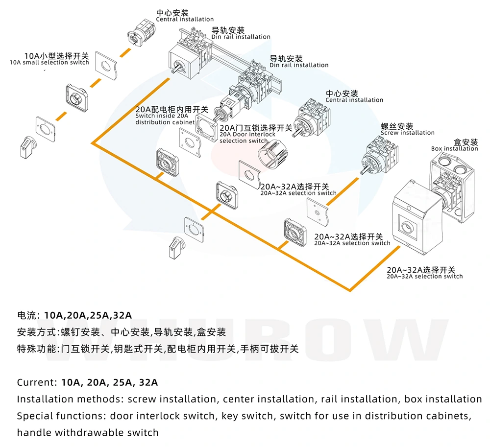 YAMING, a seasoned player in the electrical switch industry with more than three decades of specialization, proudly presents the LW42 40A Y Type Installation Behind the Board Padlock Cam Switch (internal model: YMW42-40/L). This product is meticulously developed to meet the diverse needs of electrical control circuits in industrial scenarios. Designed for CNC program-controlled machine tools and electrical devices operating under AC 50Hz, 690V voltage conditions, it plays a crucial role in multiple key links of electrical control, including control, lighting protection, signal and program selection, voltage and current measurement selection, as well as the control of small-capacity squirrel-cage asynchronous motors. Backed by YAMING's profound technical accumulation and strict quality control system, the switch is committed to delivering reliable performance to customers around the world.