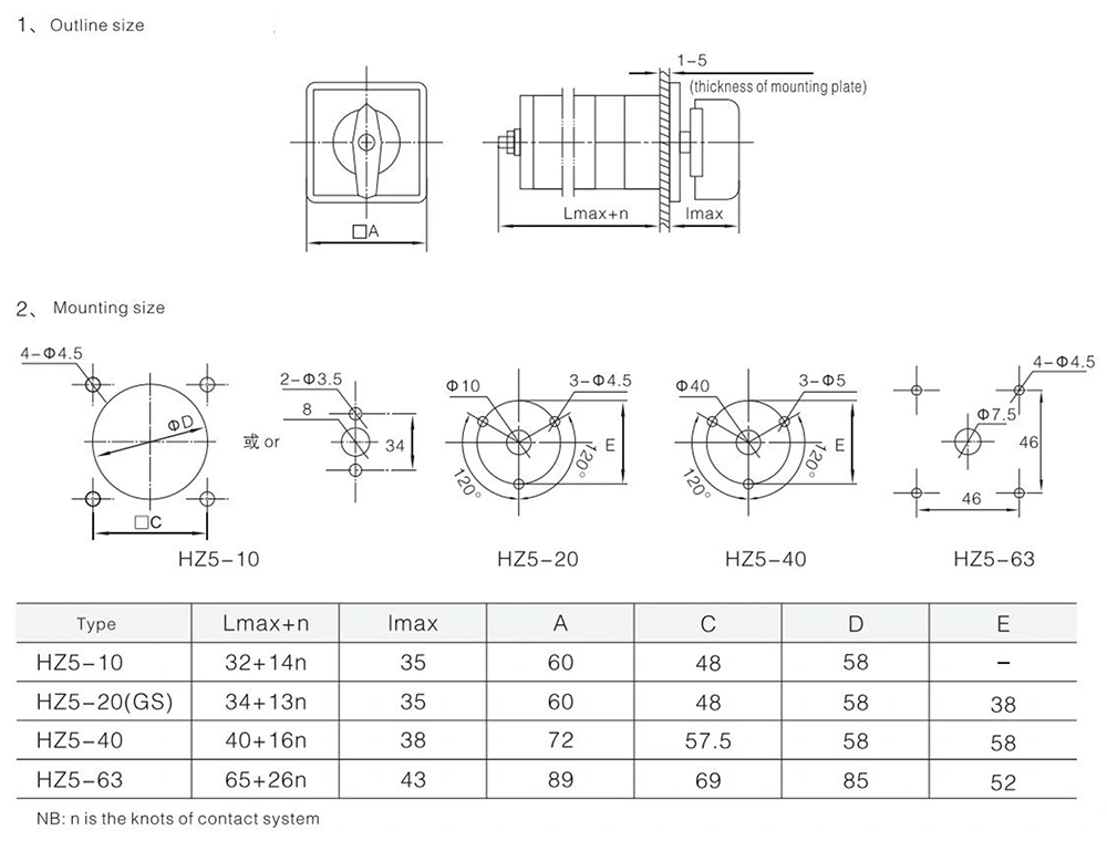 YAMING 63A Combination Rotary Cam Switch (HZ5 Series) core parameters have undergone rigorous testing and are suitable for various scenarios, as detailed below: