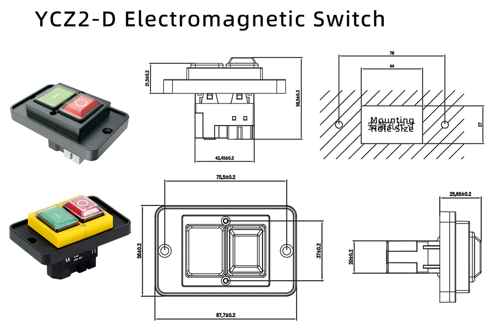 Engineered to withstand harsh and complex industrial control environments, our 8A Big Panel Yellow Push Button Electromagnetic Switch (Model: YCZ2-D) features an integrated protection design against power failure and undervoltage. It effectively prevents unexpected equipment breakdown and secures stable operational performance.